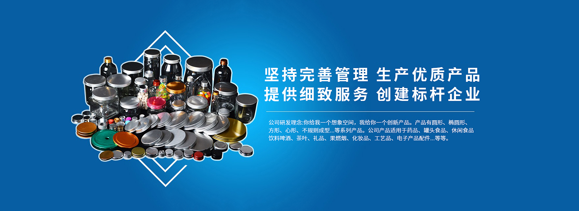 福建萬寶龍金屬制品有限公司是一家中外合資,注冊資本2000萬元,投資3000萬元的實體企業,具有20000平方的廠房建設。 公司下屬企業萬寶龍(漳州)金屬制品有限公司也是一家從事金屬制品研發和生產已有八年的實體企業,擁有5000平方的廠房。 公司走產學研發展道路,目前擁有一支百人專業研發隊伍和生產經營團隊,能接受各種非標準的金屬制品定制開模、生產銷售。具有自研自動化生產設備和開模能力,已擁有15個專利和兩個商標權。現已形成一系列產品:鋁盒、鋁蓋、易拉罐、易撕蓋、馬口鐵罐。 ? 公司研發理念:你給我一個想象空間,我給你一個創新產品。產品有圓形、橢圓形、方形、心形、不規則成型...等系列產品。公司產品適用于藥品、罐頭食品、休閑食品、飲料啤酒、茶葉、禮品、果燃煙、化妝品、工藝品、電子產品配件...等等。 公司已通過ISO9001質量管理體系和ISO22000食品安全管理體系兩大國際標準的審核和認可,公司還建立一個藥監認可的10萬級別的潔凈無塵車間。 公司與阿里巴巴、百度聯合營銷策略,將產品與世界聯系在一起。是阿里巴巴的金牌供應商。 ? 公司經營理念:力求創新、追求完善、尋求和諧、謀求雙贏。竭誠歡迎客戶前來觀光旅游和業務洽談。 ?